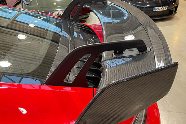 Bei uns erhalten Sie zahlreiche hochwertige Komponenten aus Carbon für den direkten Austausch gegen die jeweiligen Originalteile an Ihrem Porsche GT3 RS bzw. 992 GT3. Alle Teile lassen sich direkt und ohne weiteres Umarbeiten gegen die Originalteile austauschen. Dadurch entsteht kein größerer Zeitaufwand für den Austausch der Teile und Sie können Ihr Fahrzeug innerhalb kürzester Zeit wieder uneingeschränkt nutzen. Zu den von uns angebotenen Exterieur-Teilen aus Carbon gehören unter anderem passende Motorhauben und Flaps, Seitenschweller und Spoiler sowie Spiegel und Diffusoren. Sollten Sie weitere Fragen zum Einbau der Komponenten oder deren Beschaffenheit haben, stehen wir Ihnen für eine persönliche Beratung selbstverständlich gerne zur Verfügung. Kontaktieren Sie uns hierfür gerne telefonisch oder per E-Mail oder nutzen Sie unser Kontaktformular. Unsere Experten beraten Sie ausführlich und kompetent.